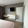 Dormitorul matrimonial detine pat matrimonial,2 noptiere,comoda suspendata,TV