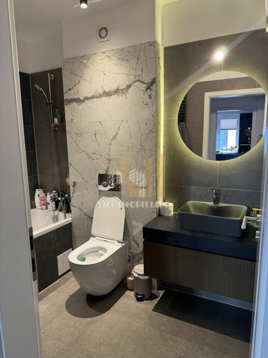 In bucatarie avem mobilier de calitate executat pe comanda,combina frigorifica,plita electrica,masina de spalat vase,cuptor electric,cuptor cu microunde,masa cu scaune