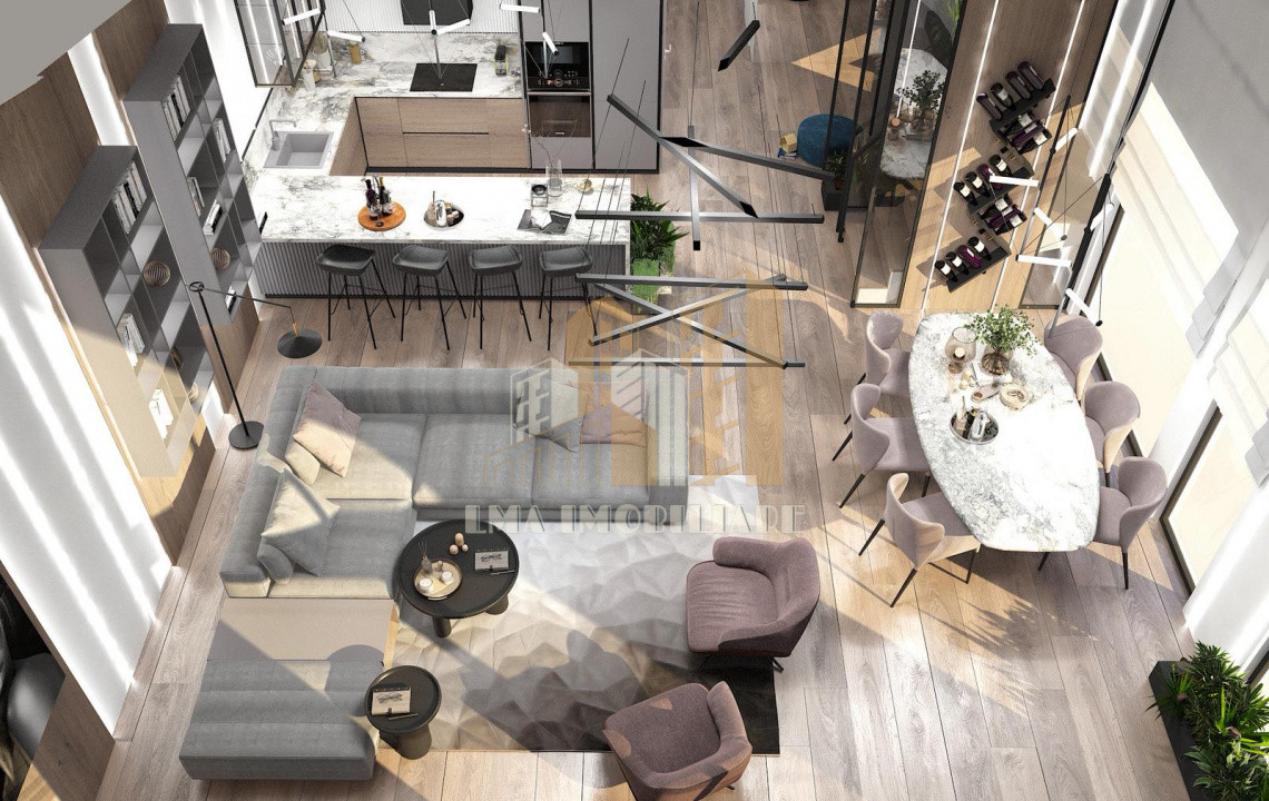 Living openspace cu bucataria si zona de dininng si acces in terasa-48.6mp