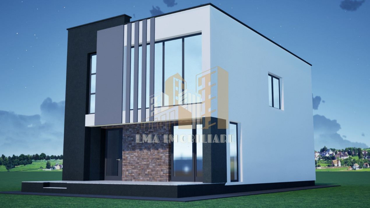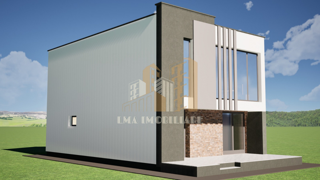 LMA Imobiliare va propune proiect casa P+E cu predare in 2026 in comuna Sanpetru ,Brasov cu un desing modern pe o structura din beton cu caramida,amplasata pe un teren de 650mp cu o suprafata libera(curte)565mp,construita 170mp,utili 129mp, cu acces din Calea Harmanului .