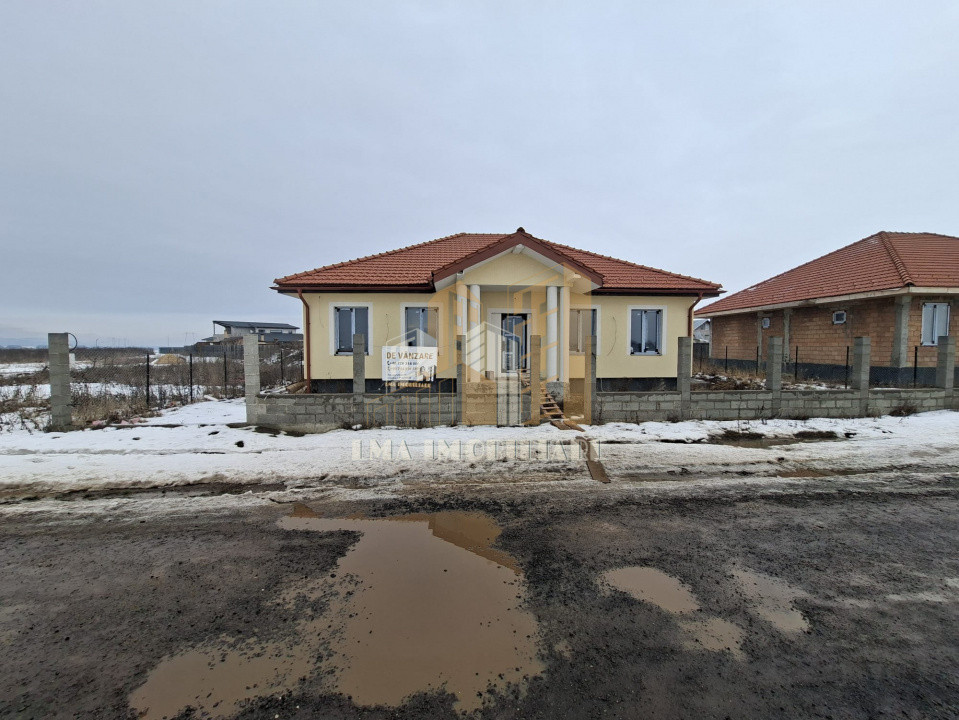 Casa este finisată exterior , la interior este la rosu, gardul va fi semiamenajat și utilitățile trase ( apa, curent electric , fosă septică și instalație pentru legarea la canalizare care în acest moment se află la 150m distanta)
