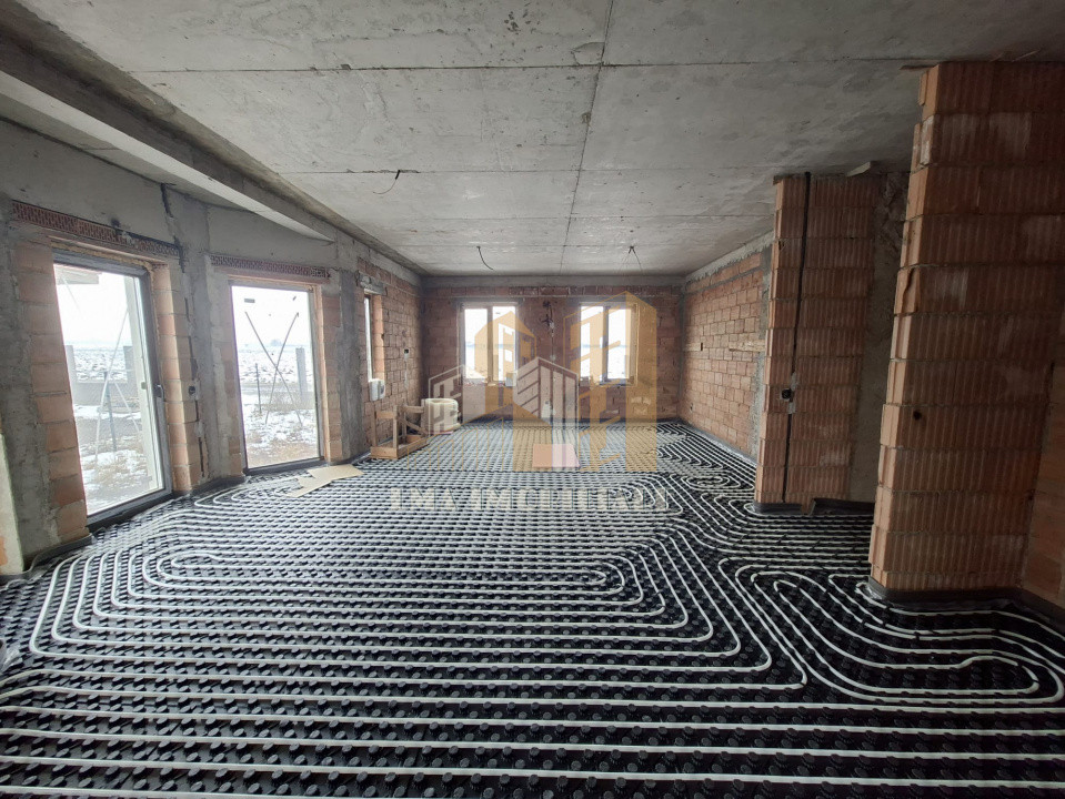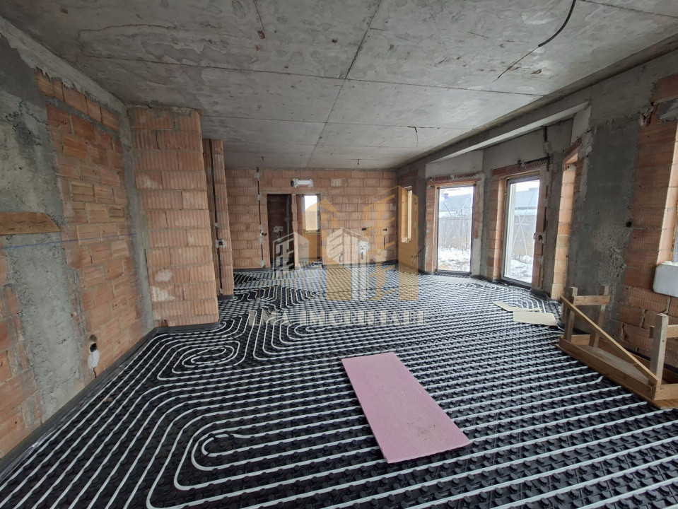 -O casă la roșu în interior, izolata finisata exterior,interior are montata instalatia de incalzire in pardoseala si instalatii electrice.
