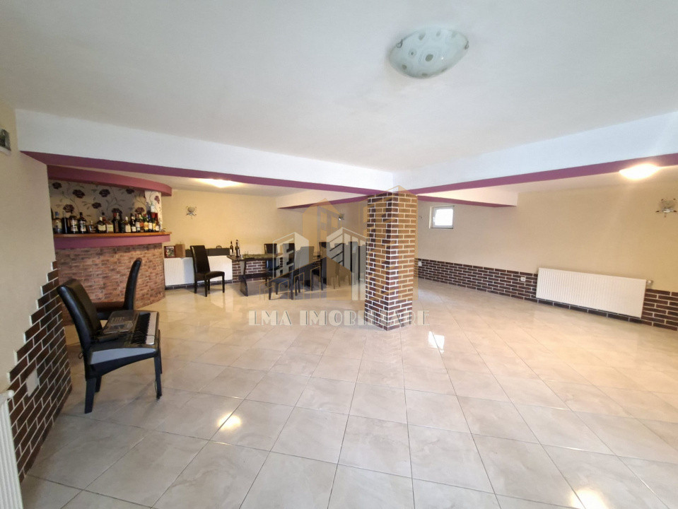 Demisol:-bar si sala destinata mai multor activitati:zile onomastice,intalniri cu prietenii,etc.;camera tehnica cu centrala pe lemne unde avem amenajata si o bucatarie de vara cu baie de serviciu,debara(camara)
