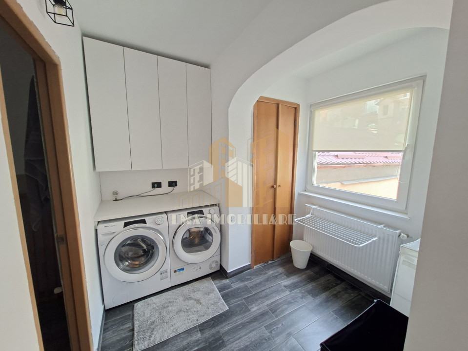 Spatiu tehnic cu debara in care se regasesc masina de spalat rufe si uscatorul de rufe